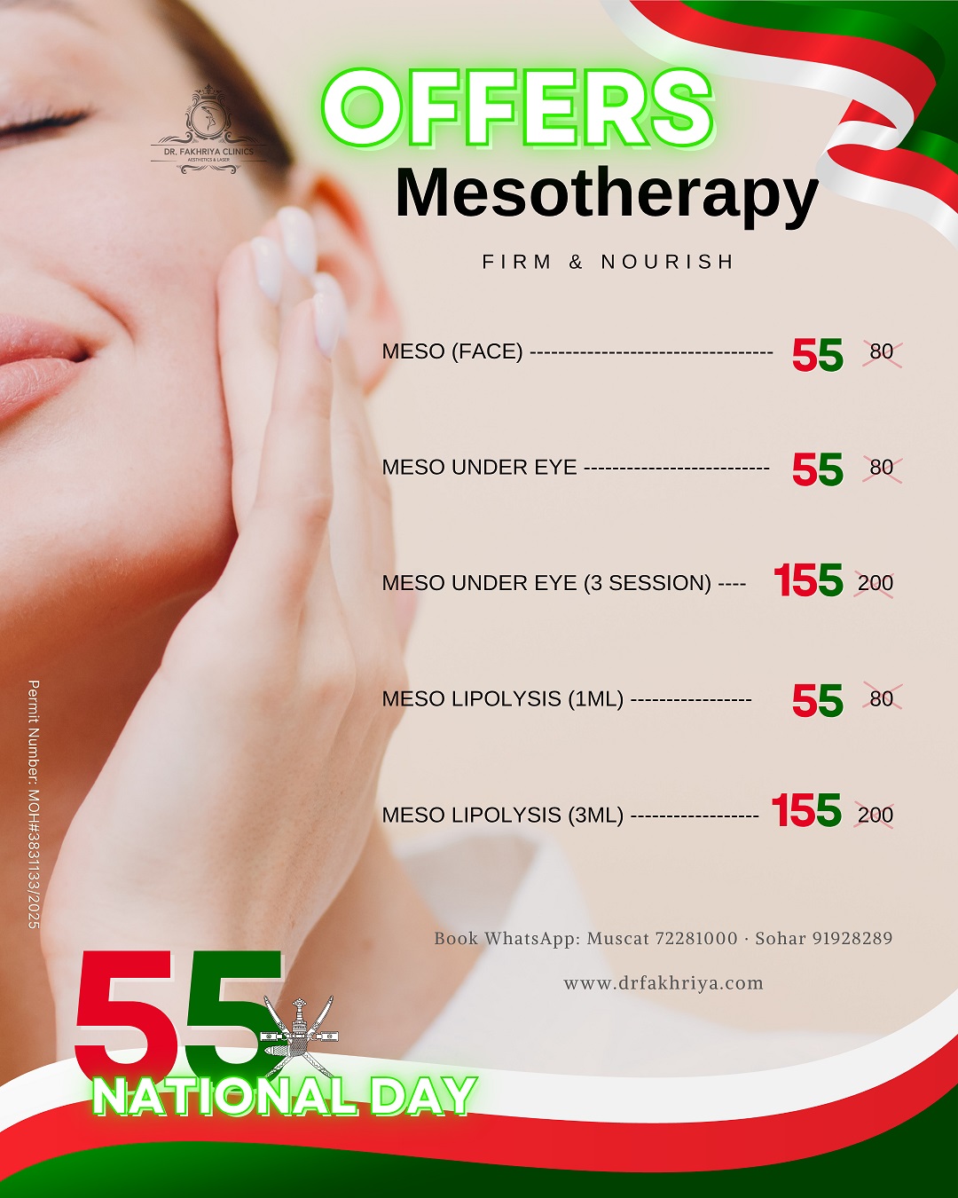 American Lip Filler + Botox for 120 OMR! 🇴🇲 Celebrate your beauty with Dr. Fakhriya Clinics this Omani National Day Get American Lip Filler + Botox for just 120 OMR 💋 Includes a free follow-up and touch-up session with Dr. Fakhriya for balanced, natural results
